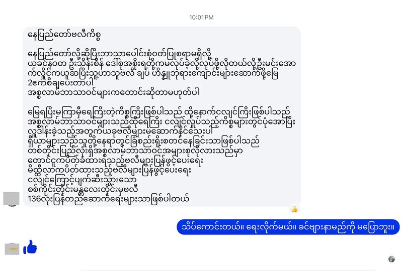 (ပို့ထားတဲ့အတိုင်း သတ်ပုံလောက်သာပြင်ပြီး ကူးရေးတင်ပါတယ်။)