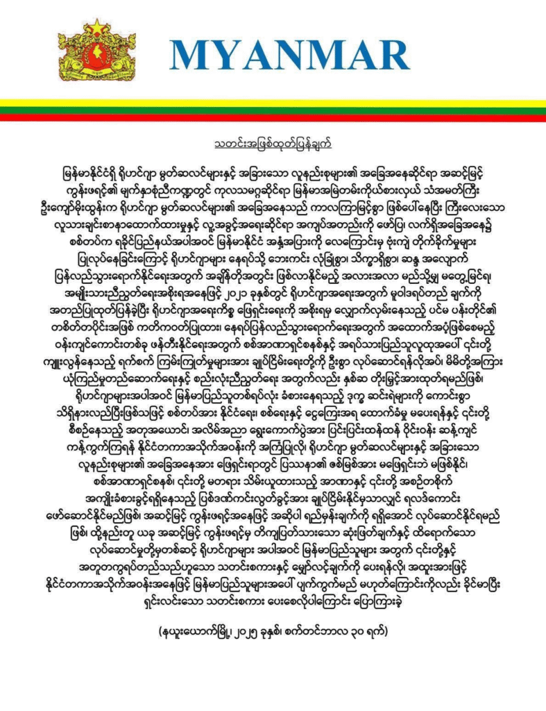 Please visit the official website of Permanent Mission of Myanmar to the United Nations: https://www.myanmarmissionnewyork.org/…/statement-by…