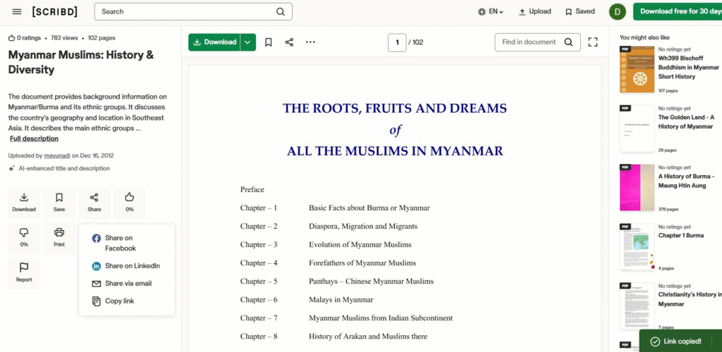 Actually this booklet is written by me and distributed in the e-mail groups of late 1980’s with my PSEUDONYM Mahabandoola @ Mohamad Bin Abdulla. But this was highjacked by the Rohingya website, as if thye had written this without acknowledging my PSEUDONYM. I later found out and complaint to the prominent Rohingya leader and he admitted his action but never correct it.