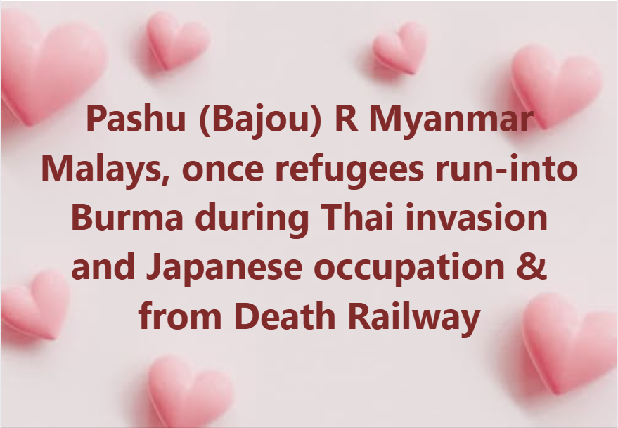 NOTE: WE, Burma/Myanmar accepted you, Malays as refugees and now even became our Ethnic Minority! I am sad that some Malay Muslims keepon inciting HATRED to Myanmar refugees even Muslims of Myanmar: Myanmar Muslims and Rohingyas. Be careful, Allah SWT knows every thing and the JUDGEMENT DAY is waiting for all of you.
