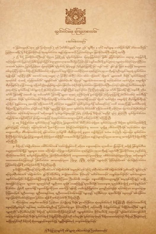 ဤငါတို့ကြေညာချက်ကို တကမ္ဘာလုံး တယောက်မကျန် ကြားသိစေသတည်း။