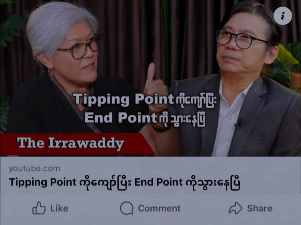 U Aung Tin closes with a blunt message to those who once declared there was “nothing to discuss while blood has been shed” but are now quietly opening restaurants in Mae Sot, running KTV bars, rolling sushi in Western cities, or selling goods online. If you have funds set aside, he says, look to yourself. If you still want to fight from the jungle, do so — but stop compounding the suffering of ordinary people who already bear the full weight of junta brutality. Do not rob the wounded to feed the comfortable.
