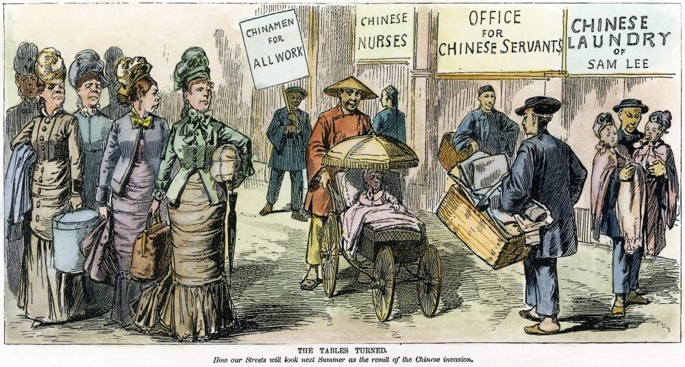 Cartoon Chinese Immigrants 1880 NThe Tables Turned American Cartoon Suggesting What City Streets Might Look Like To Irish-Americans As A Result Of Increased Chinese Immigration Cartoon 1880.